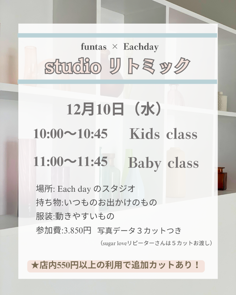 そんなEach dayさんとのコラボ企画で、親子写真の撮影ができるリトミックを毎月開催しています。